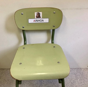 escrita, acompanyada o no de la imatge: per exemple, el nom escrit a la seva agenda o a la cadira.